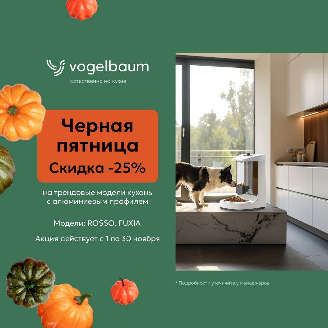 Ноябрь — время действовать! Мы присоединяемся к Чёрной пятнице и открываем целый месяц эксклюзивных предложений. Теперь у вас есть целых 30 дней, чтобы выбрать идеальную кухню премиум‑класса по особой цене.
