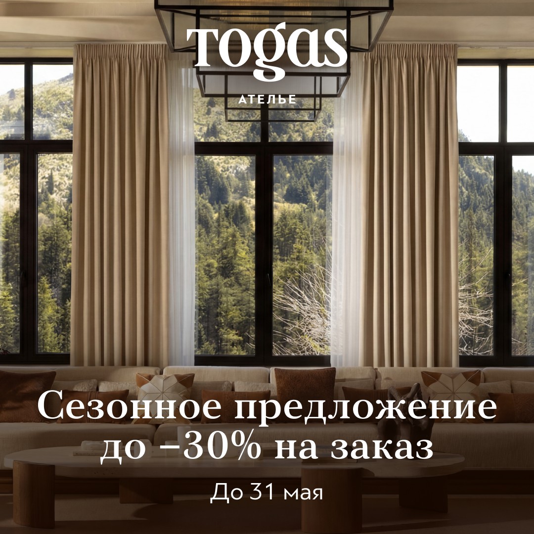 До конца мая наслаждайтесь сезонным предложением от Togas Ателье.