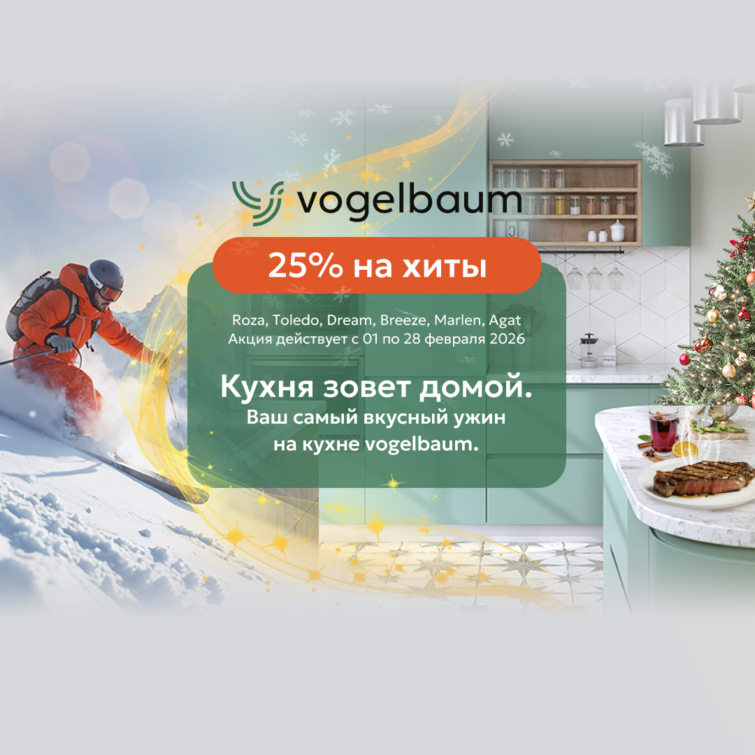 Весь феварль в Vogelbaum вас ждёт калейдоскоп подарков, скидок и сюрпризов — от бытовой техники до стильных столешниц!