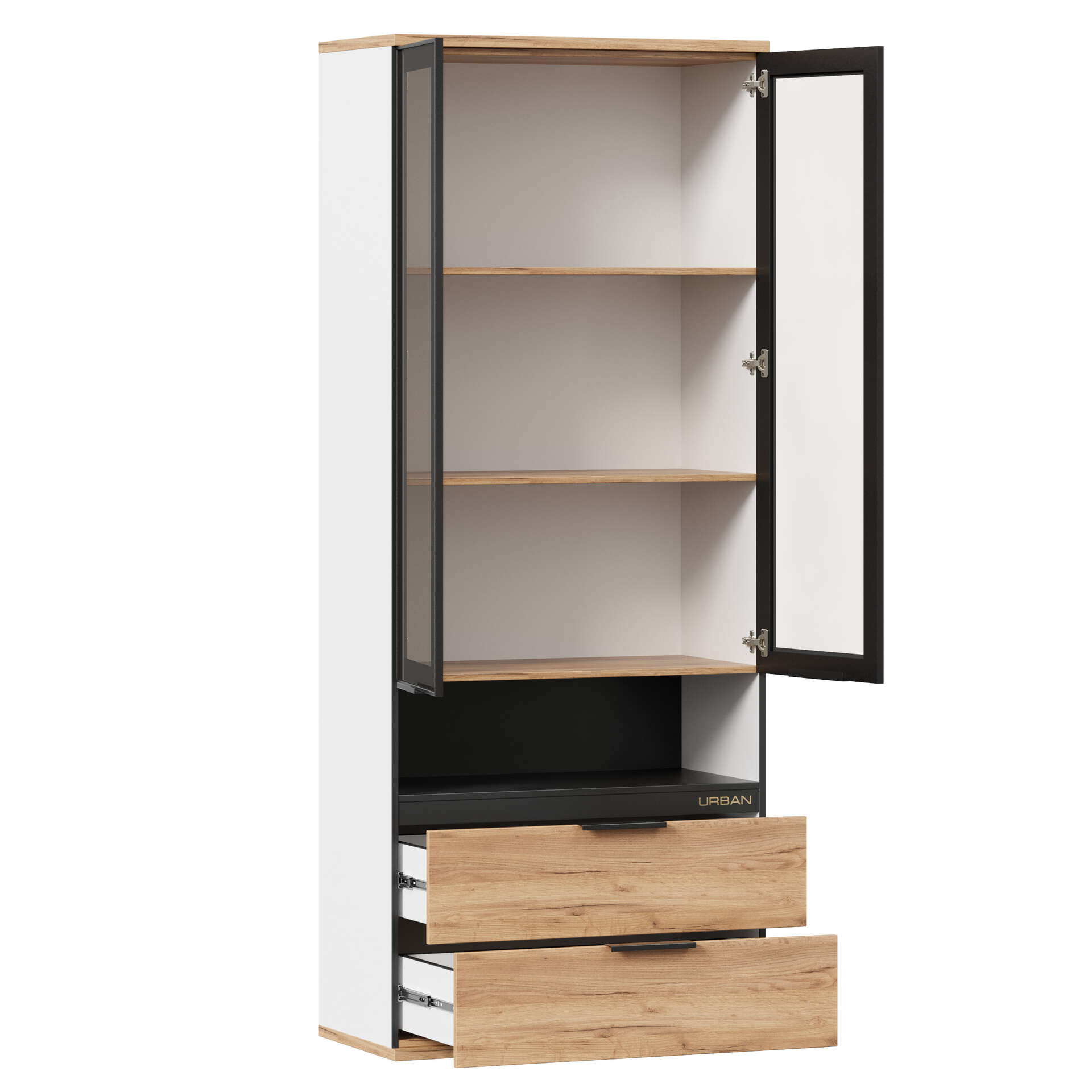ЛД 528.290.000 "Урбан" Шкаф комбинированный со стеклодверьми (Белый/Дуб золотой М)