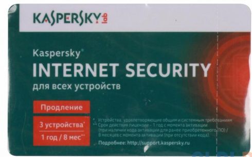Kaspersky Internet Security продление (3 устройства / 1 год) (карта активации)