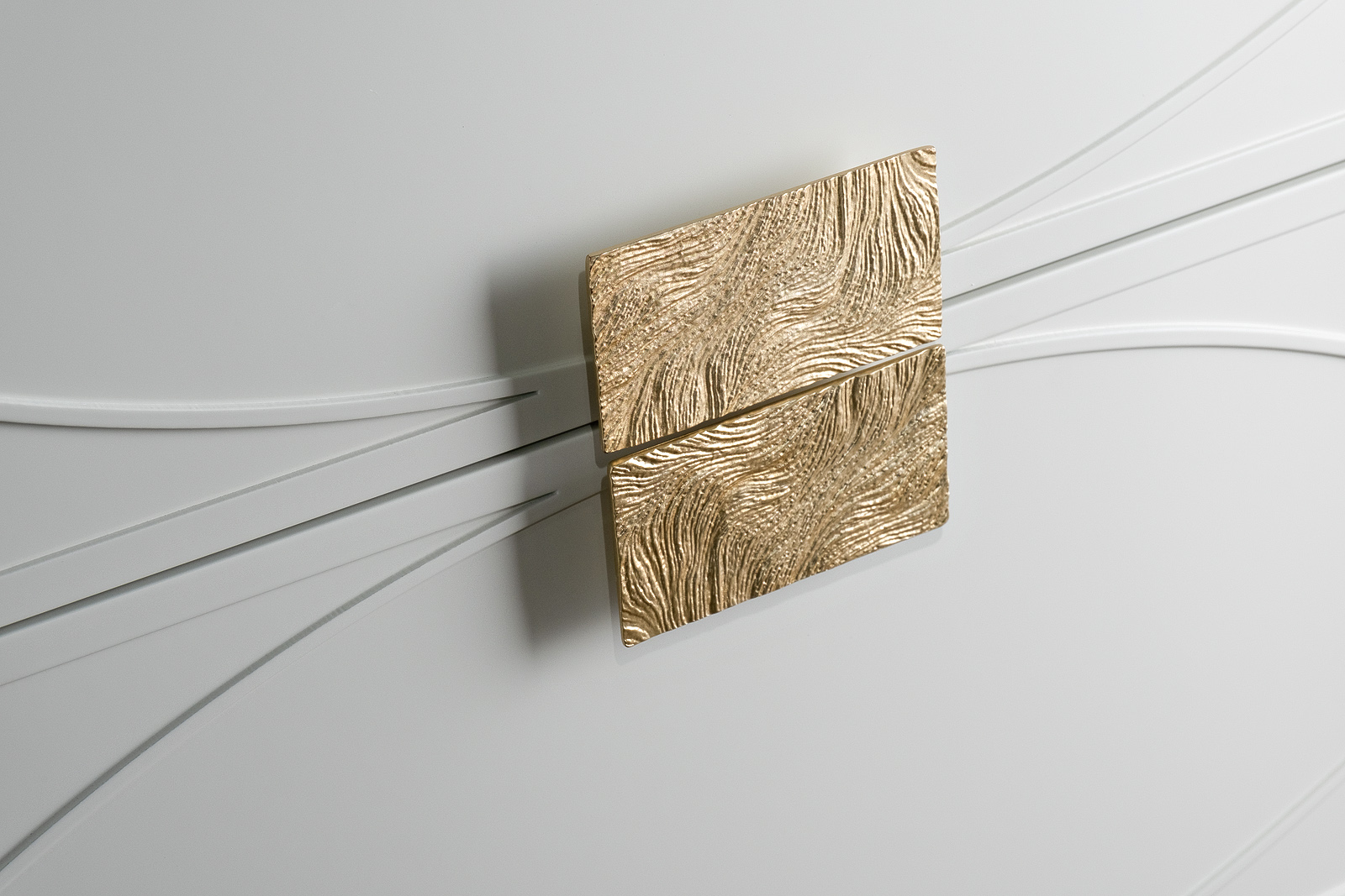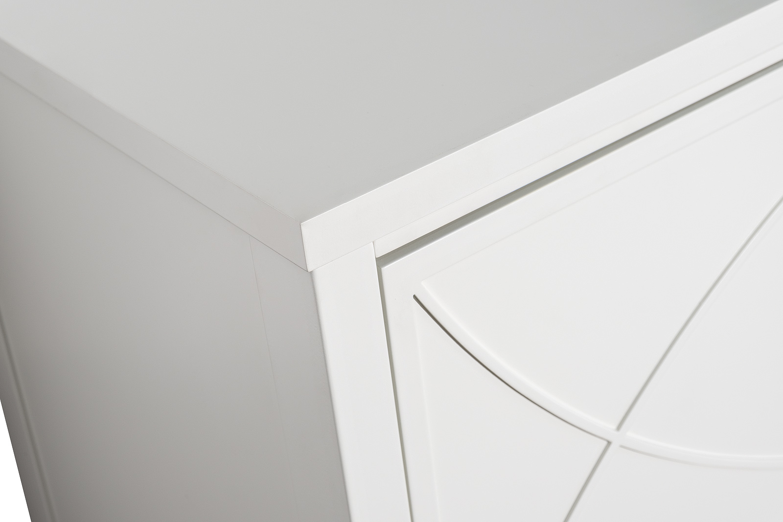 Дизайнерский комод в стиле ар-деко - авторская разработка дизайн-студии Garda Decor. Бежевый матовый фасад украшен объемным дугообразным декором и широкими рельефными ручками золотого цвета(матовое золото). Два выдвижных ящика прекрасно подойдут для хране...