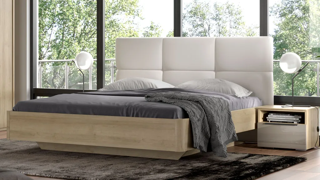 Двуспальная кровать QUATRO из коллекции современной мебели SOLO оснащена мягким изголовьем, выполненным из экокожи. Размер спального места: 160х200 см.