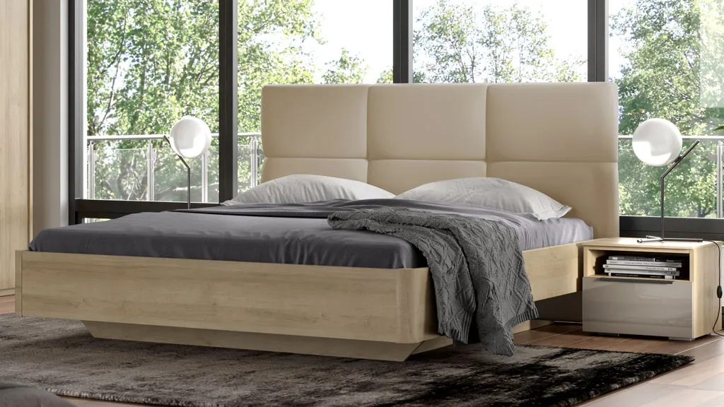 Двуспальная кровать QUATRO из коллекции современной мебели SOLO оснащена мягким изголовьем, выполненным из экокожи. Размер спального места: 160х200 см.
