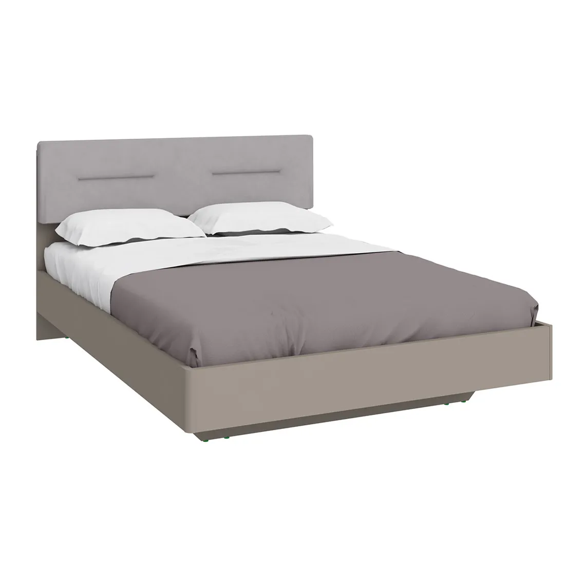 Двуспальная кровать Наполи изготовлена из высококачественного ЛДСП в стильно декоре «Камень Терра» с мягким изголовьем из искусственной замши.