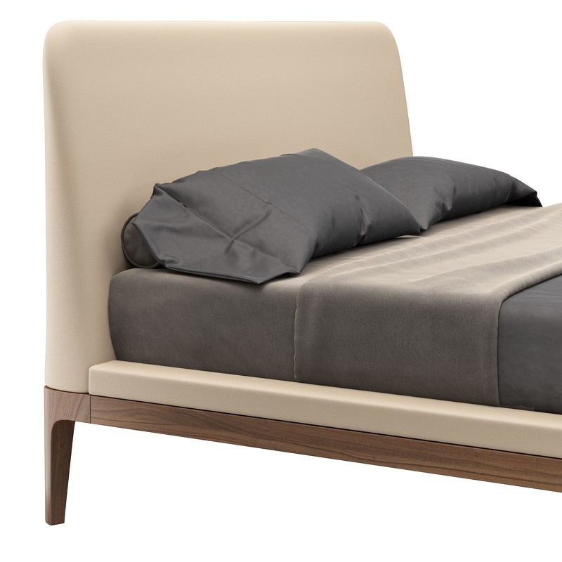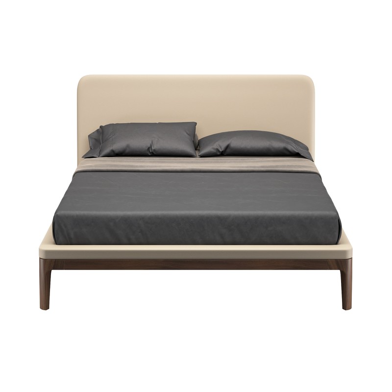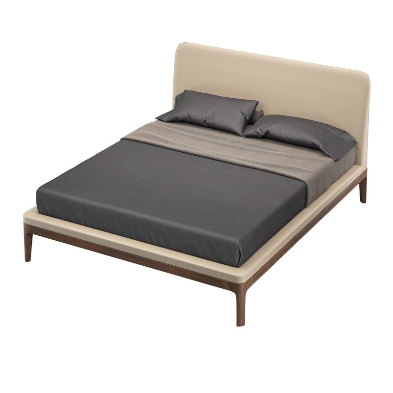 Изголовье кровати изготовлено из МДФ высокой плотности из Новой Зеландии. База и ножки кровати выполнены из массива дерева.