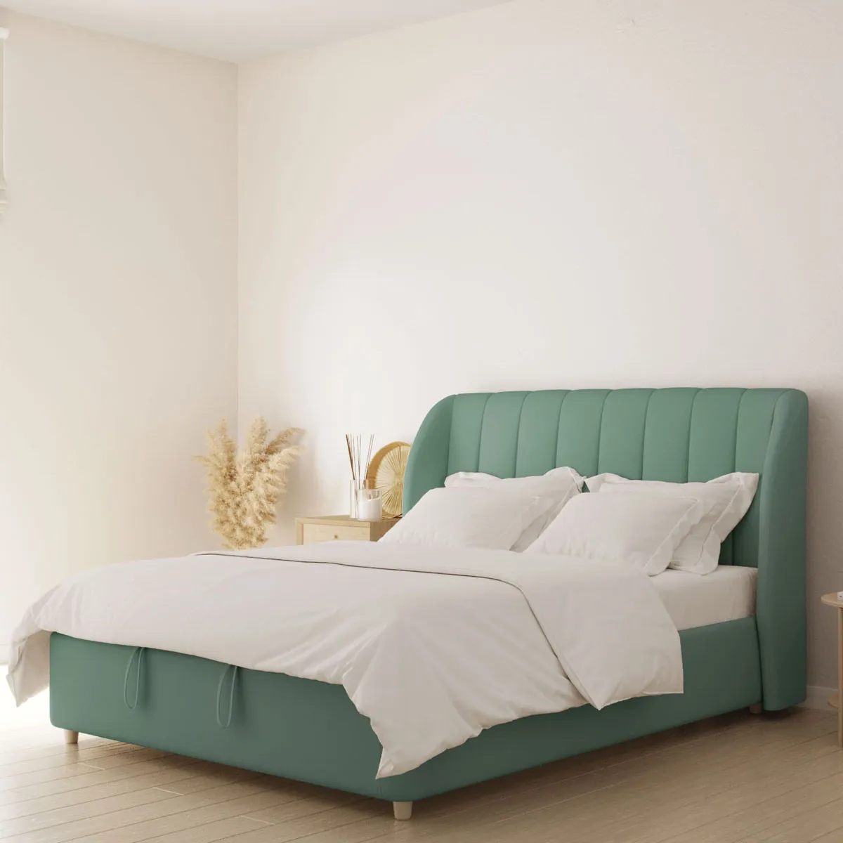 Благодаря строгим вертикальным утяжкам изголовье выглядит более высоким. Боковые части словно обрамляют спальное место, создавая личное пространство. Изделие органично впишется в арт‑деко, американскую классику и скандинавский стиль.