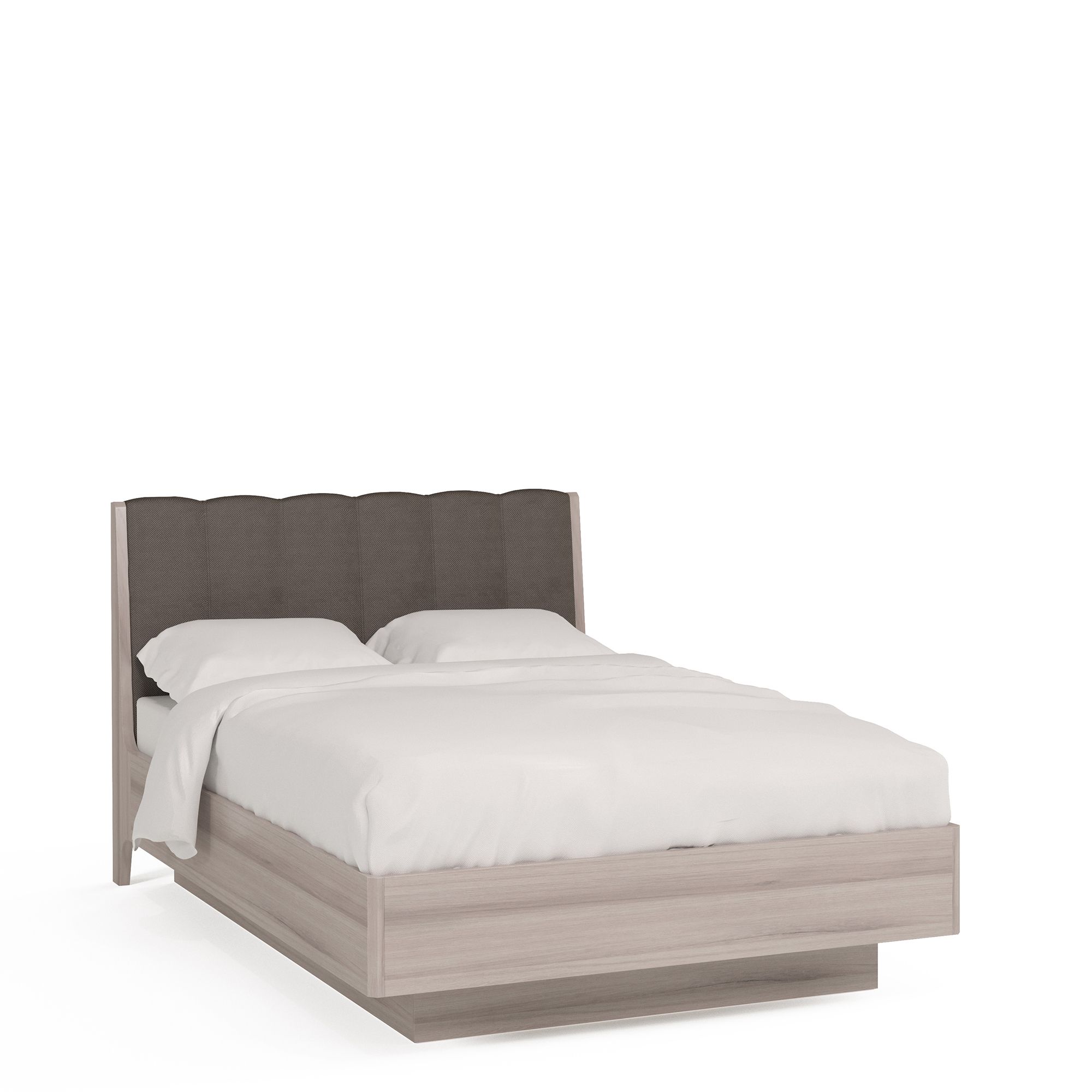 В комплект удобной двуспальной кровати ALTERA с высоким мягким изголовьем входят ящик для белья с подъемным механизмом и ортопедическая решетка с березовыми ламелями. По желанию изголовье также может быть оснащено светильниками для чтения на гибкой регулируемой ножке.