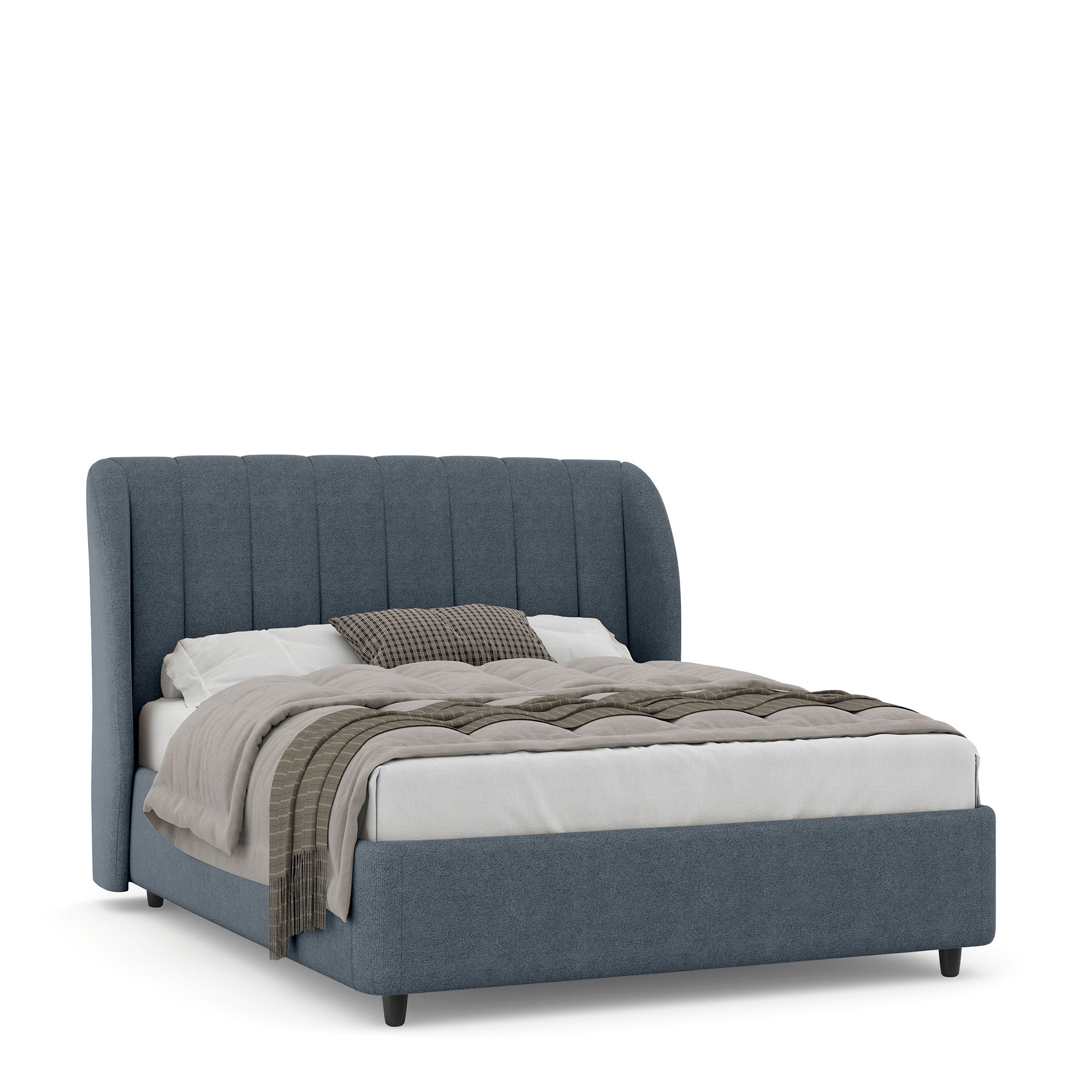 Полутораспальная кровать NAPOLI в полностью мягком текстильном корпусе оснащена высоким изголовьем с «ушками», декорированным вертикальной прострочкой. Модель с надежным подъемным механизмом и вместительным ящиком для белья. Металлическое основание и ортопедическая решетка (каркас – металл) входят в комплектацию модели. Максимальная высота матраса – до 50 см. Высота ножек кровати – 10 см.