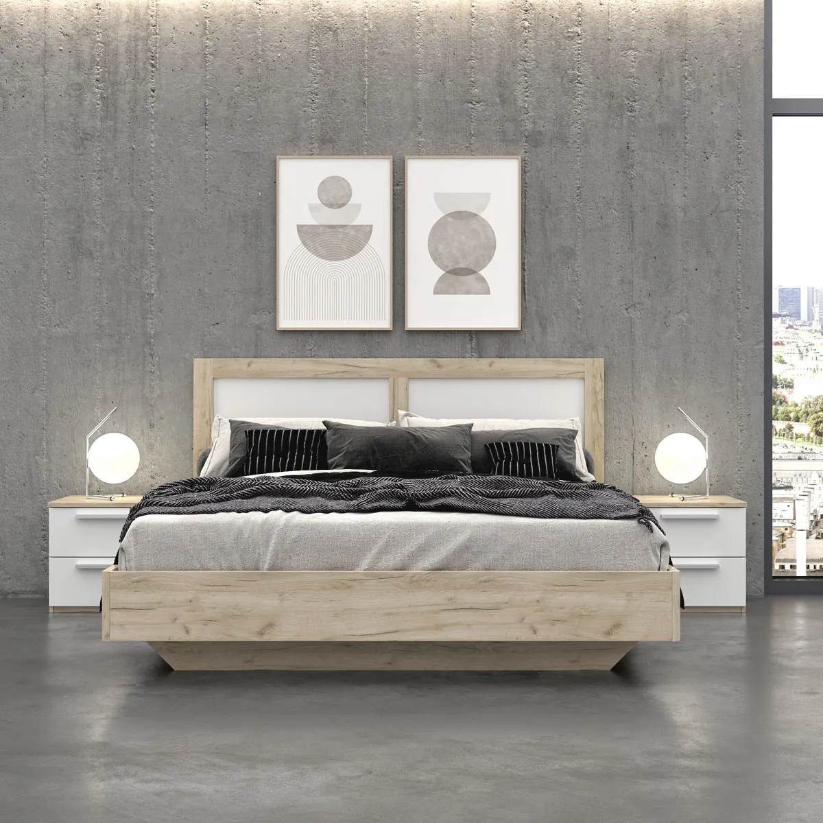 Кровать с тумбами Наполи (Крафт серый/белый матовый)