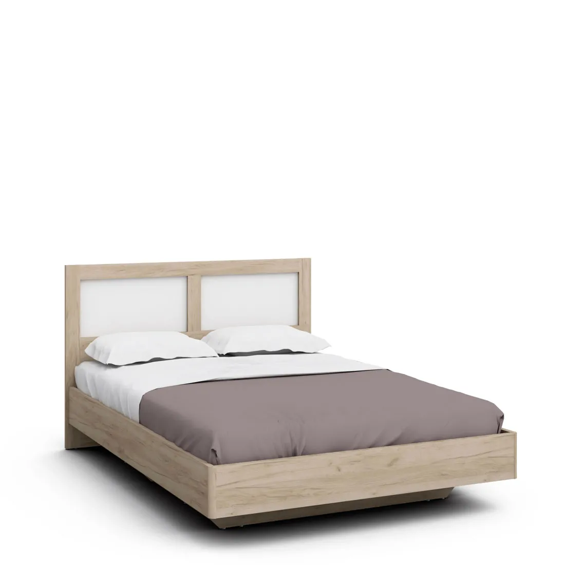 Кровать с ящиком для белья Наполи изготовлена из высококачественного ЛДСП в натуральном декоре «дуб Крафт серый» со вставкой «Белый матовый».