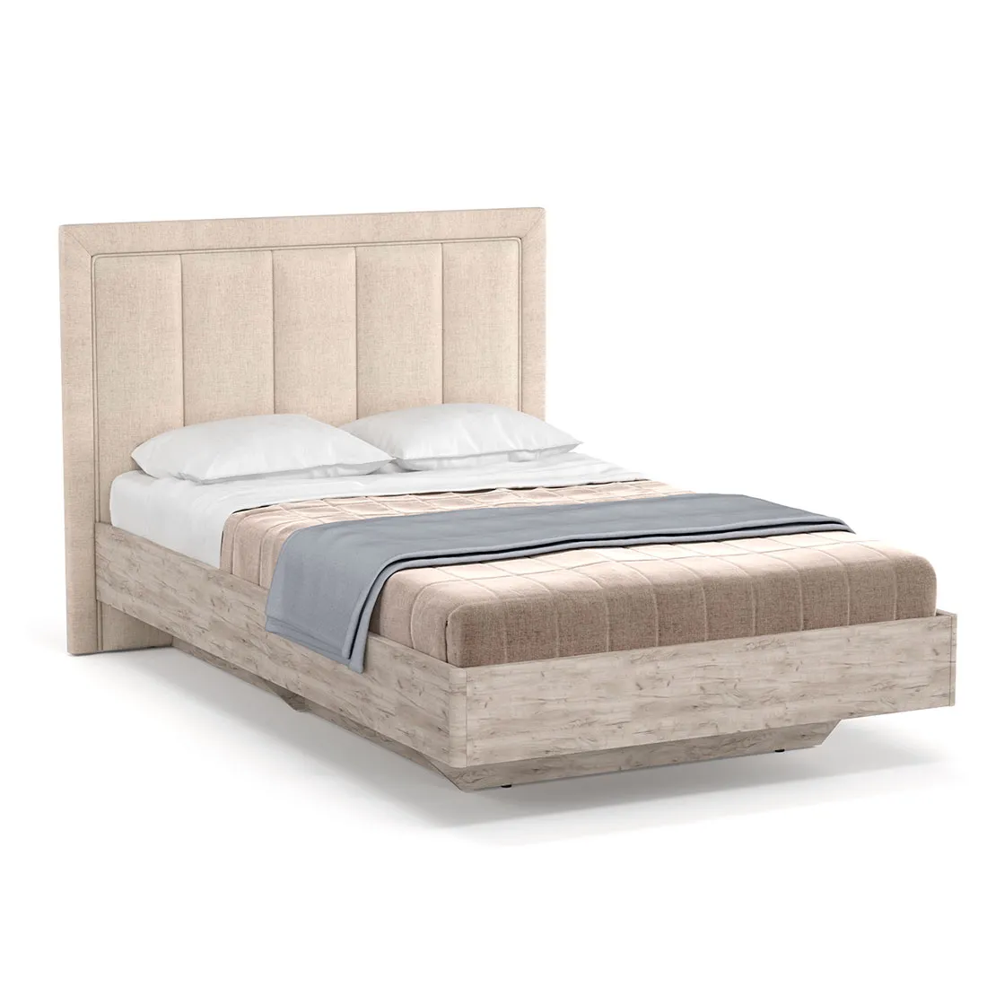 Полуторная кровать с ящиком для белья Наполи изготовлена из высококачественного ЛДСП в натуральном декоре «дуб Крафт серый» с мягким изголовьем из рогожки в цвете Bravo White. Данное сочетание выглядит стильно и гармонично, поэтому такая кровать обязательно станет центром внимания в современной спальне.
