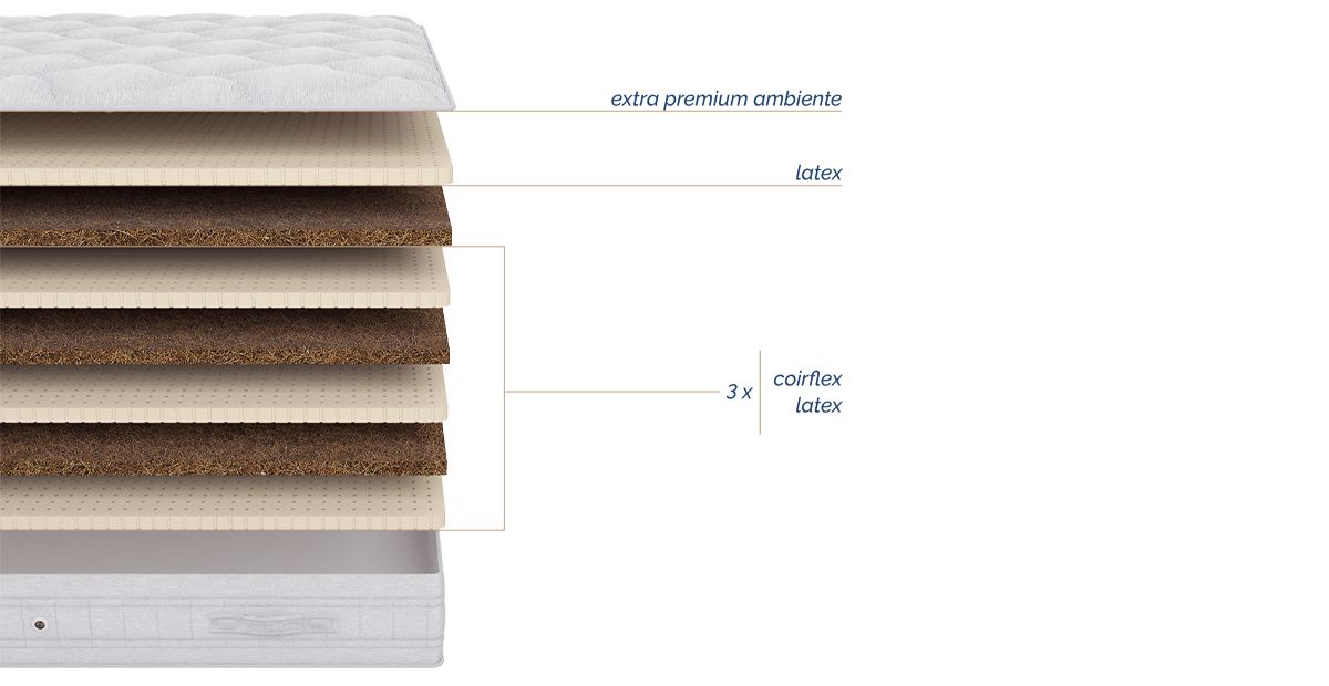 Беспружинный матрас LOTOS. Сочетание упругой койры и нежного эластичного латекса позволили создать жесткий, но комфортный матрас.