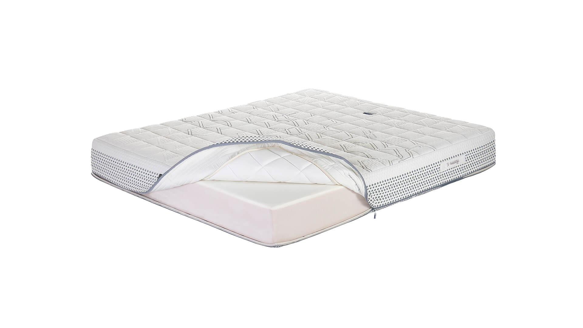 MASSAGGIO DELUXE Беспружинный матрас Massaggio Deluxe из коллекции Massaggio. Матрас высотой 25 см, со средним уровнем поддержки спины и средним по жесткости уровнем комфорта. Разработанная фабрикой Magniflex пена Magnifoam Memoform с эффектом памяти размещена в подкладке чехла и осуществляет легкий массажное воздействие за счет своей специальной формы. Непрерывный микромассаж стимулирует кровообращение, полезен для кожи и улучшает самочувствие. Massaggio Deluxe является мультизональным. Также в матрасе, в отличие от модели Massaggio Light, присутствует дополнительный слой под чехлом в виде 2 см материала Memoform, что в свою очередь увеличивает комфортность матраса. Magniflex Memoform имеет высокие анатомические свойства, реагирует не на тепло, а именно на вес. Таким образом, в отличие от обычной пены с эффектом памяти, Вы спите на матрасе, а не в матрасе. Memoform мягко обволакивает тело, а основной слой Eliosoft обеспечивает оптимальную, но в то же время нежную и ортопедическую поддержку спины. За счет свойств используемых материалов матрас Massaggio Deluxe не создает обратного давления и защищает от пролежней. Рекомендована эксплуатация на ортопедической решетке для сохранения уровня циркуляции воздуха.Высокоэластичные пены повышенной плотности на основе натуральных материалов, используемые в матрасе, обладают мелкопористой структурой, которая позволяет матрасу быть «дышащим» и отлично вентилируемым. Это позволяет матрасу дольше сохранять свежесть сна без пылевых клещей и прочих микроскопических биологических отложений. Благодаря хорошей воздухопроницаемости обеспечивается также гигиеничность и гипоаллергенность, ведь аллергенам свойственно накапливаться в трудно проветриваемых местах. Съемный чехол на молнии из 3D ткани выполнен из материала вискоза на основе натурального сырья, имеет также повышенный уровень воздухопроницаемости.Уютный матрас Massaggio Deluxe очень приятен на ощупь, устойчив к образованию плесени или грибка, а за счет высокой плотности материалов выдерживает до 180 кг на спальное место. Чехол легко расстегивается и полностью снимается, возможна химчистка и стирка (допускается стирка части чехла, которая не содержит пену)Матрас произведен в Италии, в городе Прато (Флоренция, Тоскана). Поставляется в вакуумной рулонной упаковке или в развернутом виде. В самом сердце матраса A - ЧехолПриятная на ощупь 3D ткань, вискоза, c высокой воздухопроницаемостью. B - Подкладка чехлаДва разных материала:Memoform - это анатомический материал, который идеально повторяет контуры тела. Встроенная система массажа восстанавливает микроциркуляцию кожи и обеспечивает приятное ощущение хорошего самочувствия.Гипоалергенный дышащий материал сохраняет дополнительный комфорт и гигиену во время сна. C - Уровень комфортаСлой из Memoform (2 см) реагирует на вес, анатомически подстраиваясь под любой силуэт и гарантируя уютный комфорт и расслабление. D - ПоддержкаСлой из Elioform (19 см) обеспечивает оптимальную и жесткую поддержку спины.