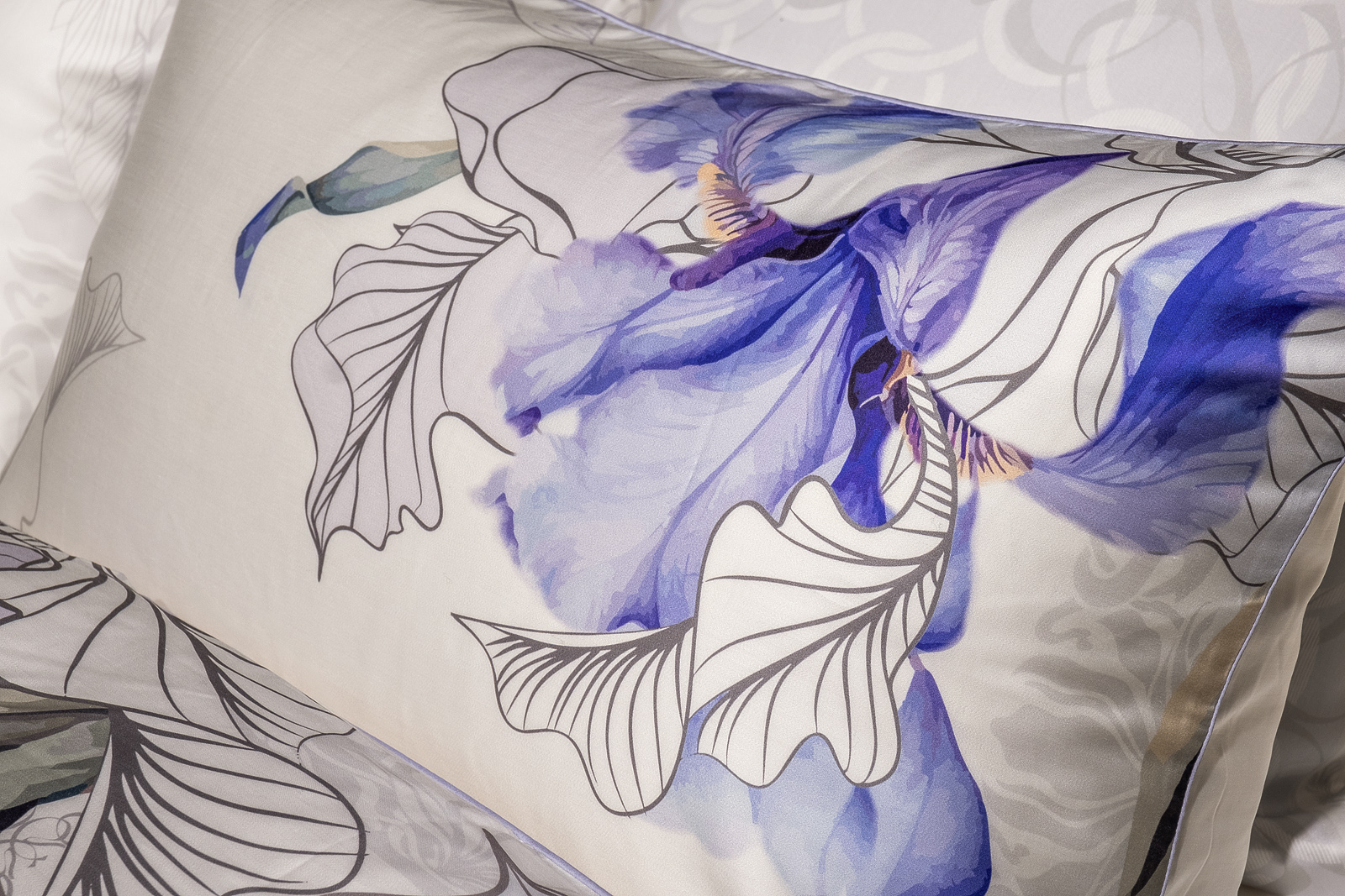 180JOD-18027 Комплект постельного белья Ирисы , тенсель, 200*220-1шт, 50*70-2 шт