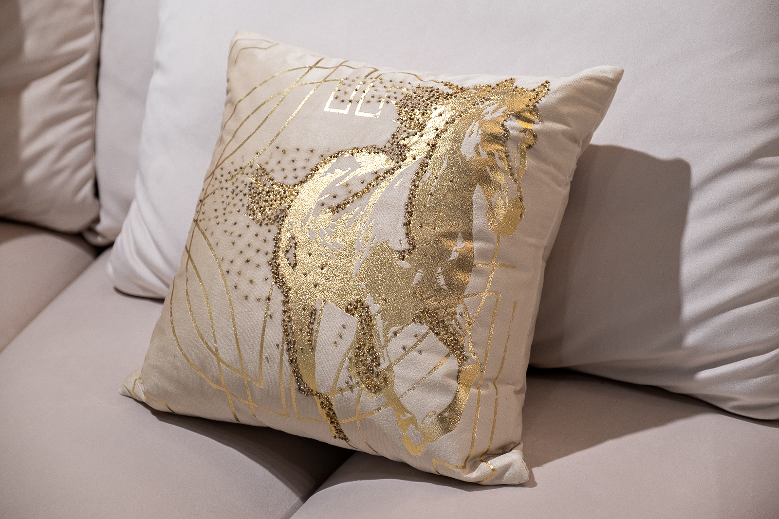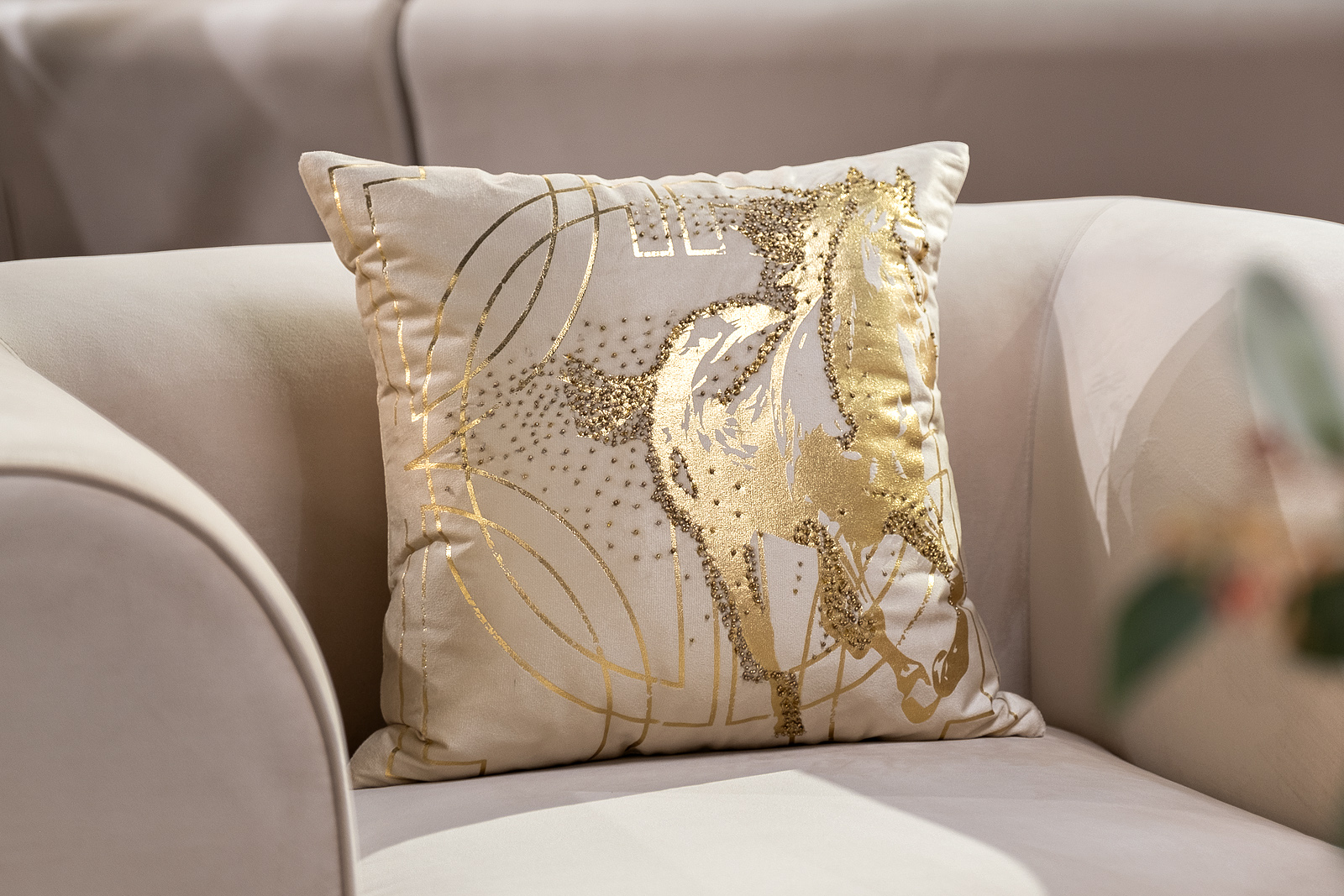 70SW-38059 Подушка с бисером, стеклярусом и вышивкой "Голден Спирит" беж 45*45