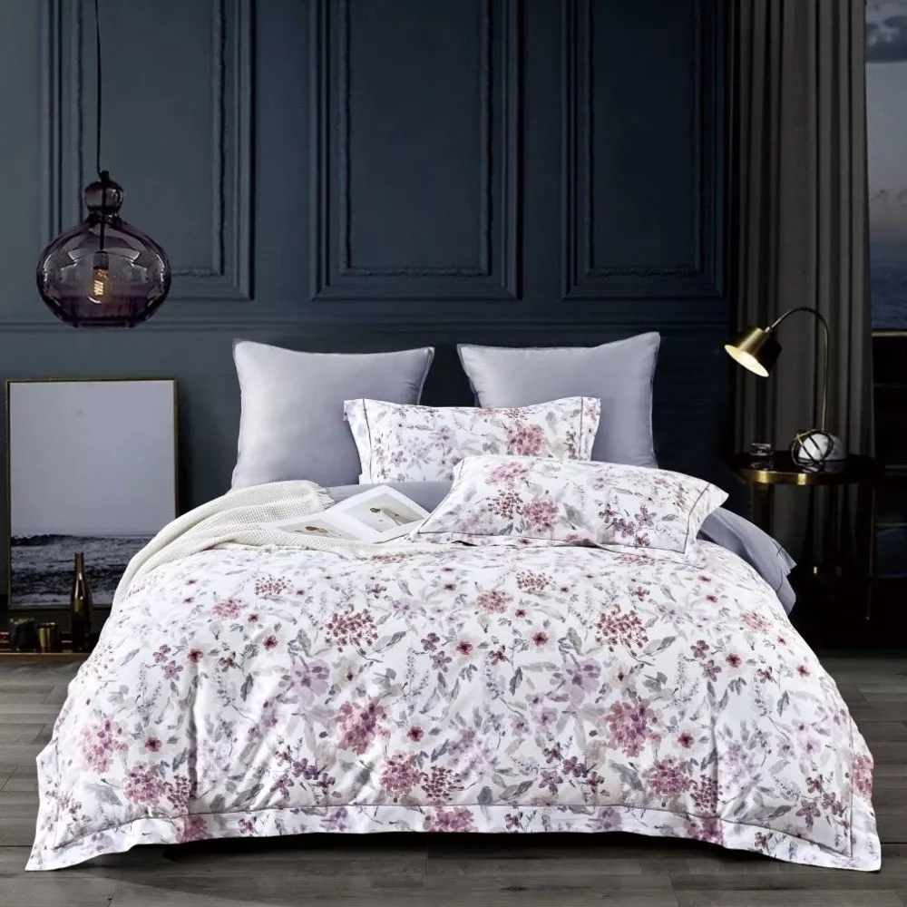 КПБ, Евро, египетский хлопок Premium, белый/розовый/сиреневый, Asabella
