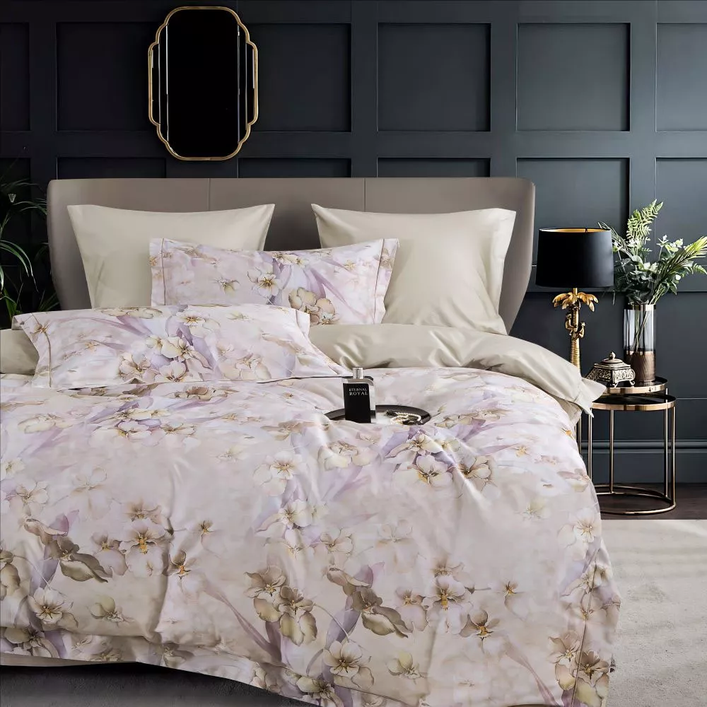КПБ, Евро, египетский хлопок Premium, бежевый/розовый/коричневый, Asabella