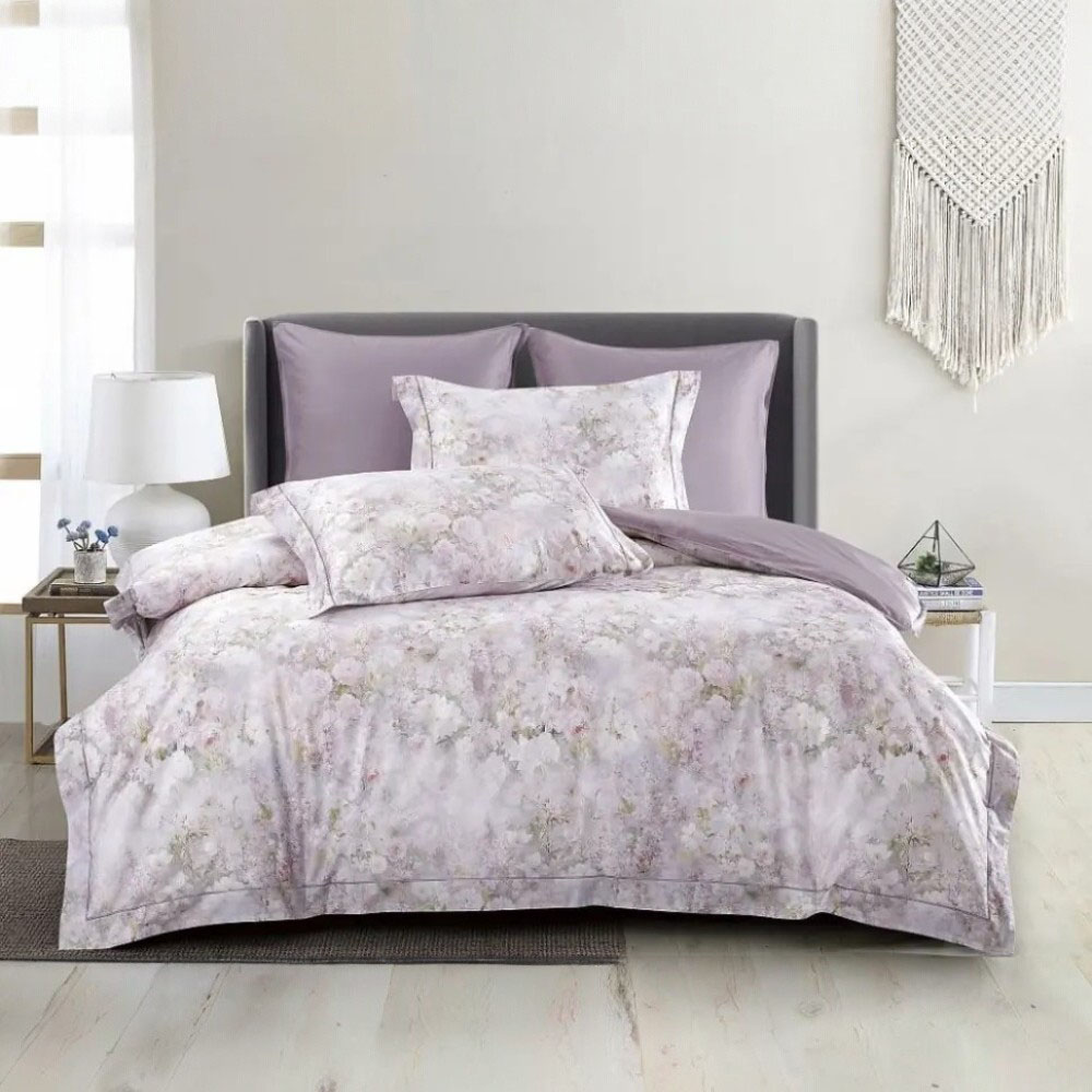 КПБ, Евро, египетский хлопок Premium, лиловый/сиреневый/фиолетовый, Asabella