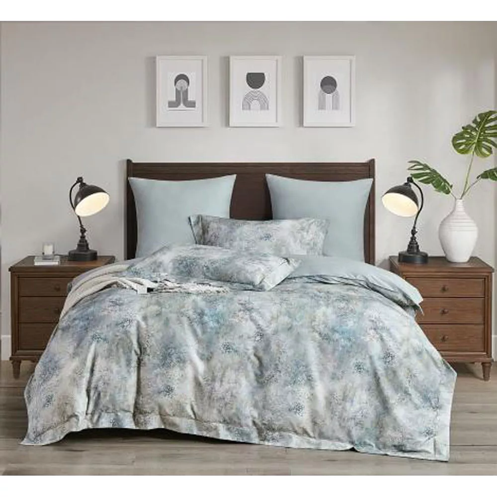 КПБ, Евро, фланель-египетский хлопок Premium, голубой/серый, Asabella