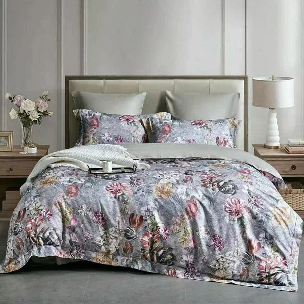 КПБ, Евро, фланель-тенсел, бежевый/розовый/серый, Asabella