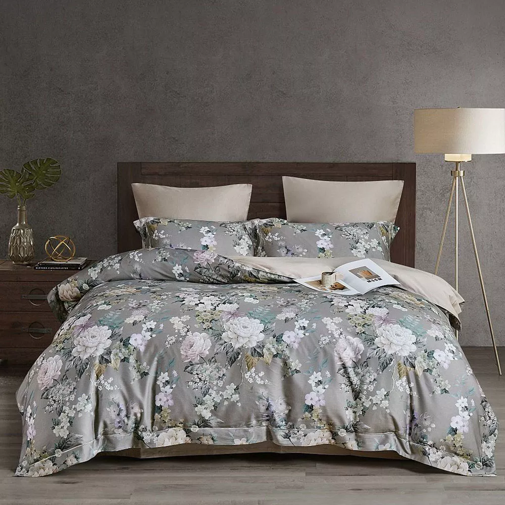 КПБ, Евро, фланель-тенсел, бежевый/серый, Asabella