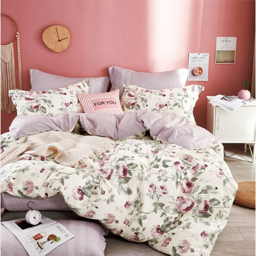 КПБ, Евро, печатный сатин, белый/розовый/молочный, Asabella