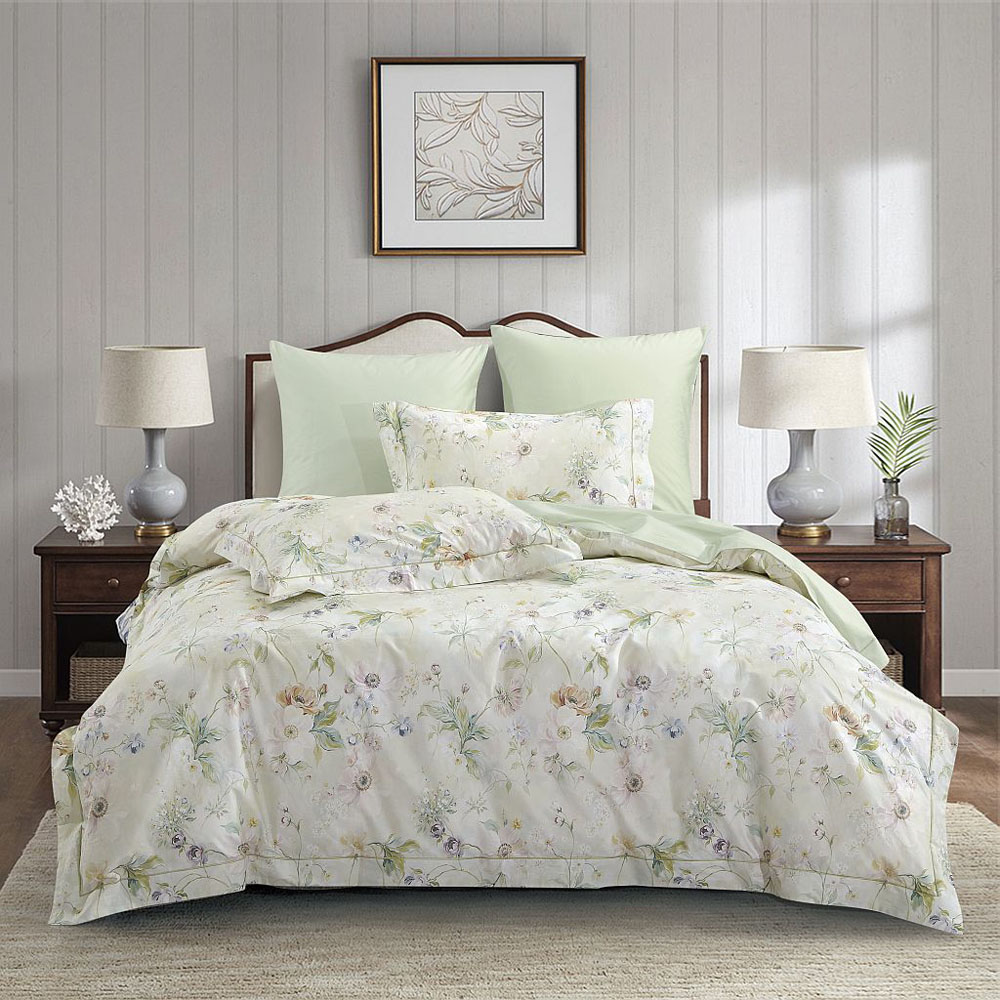КПБ, Евро, сатин, зеленый/сливочный, Asabella