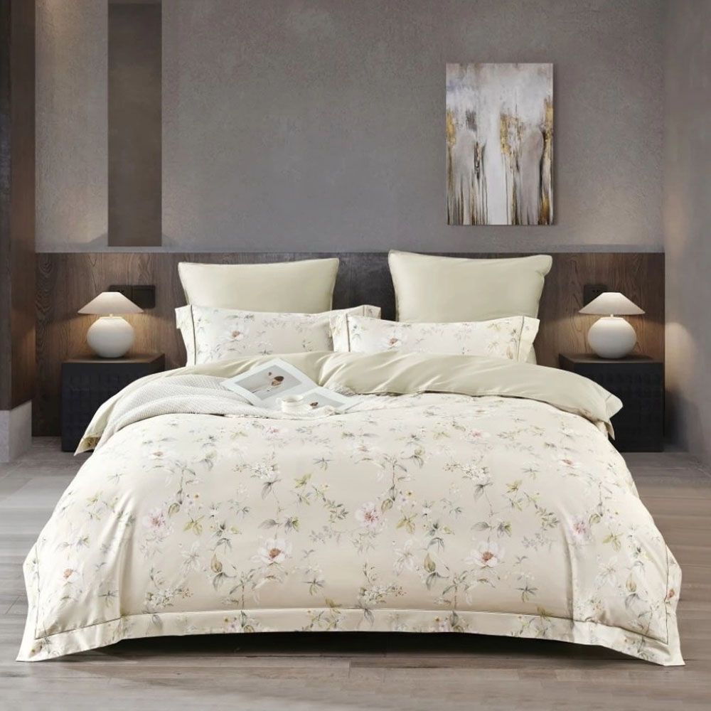 КПБ с одеялом, Евро, египетский хлопок Premium, бежевый/фисташковый/салатовый, Asabella