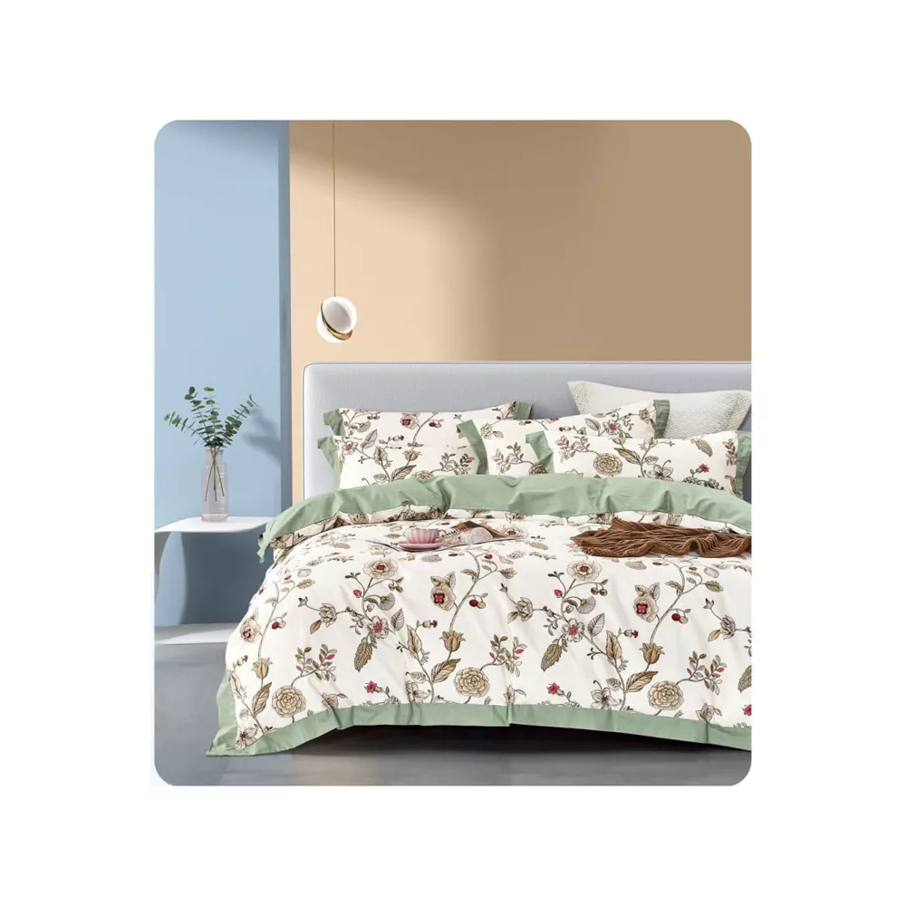 КПБ, Семейный, печатный сатин, бежевый/зеленый, Asabella