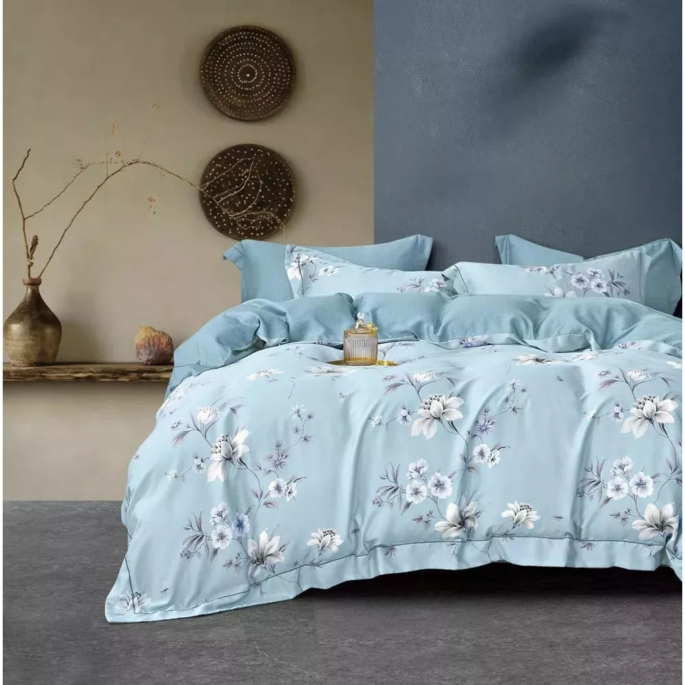 КПБ, Евро, сатин тенсел, голубой, Asabella
