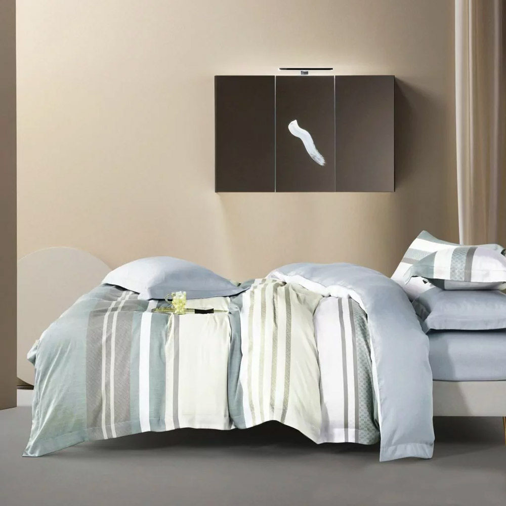 КПБ, Евро, сатин тенсел, бежевый/голубой/мятный/серый, Asabella