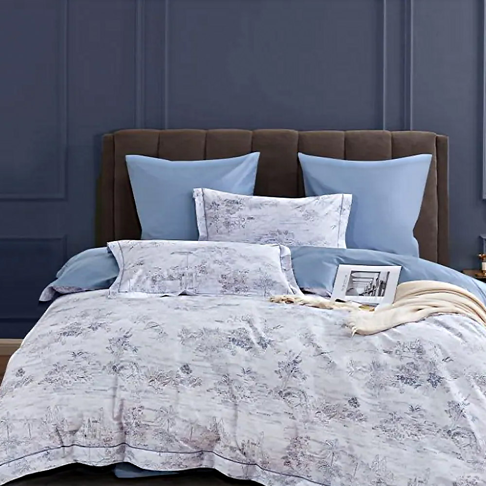КПБ, Евро, египетский хлопок Premium, голубой/синий, Asabella