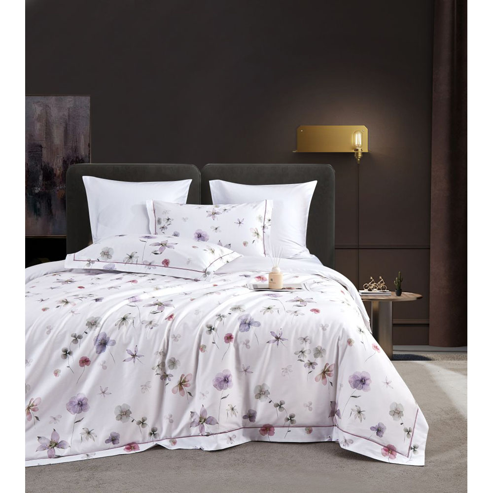 КПБ, Семейный, египетский хлопок Premium, белый/сиреневый/фиолетовый, Asabella