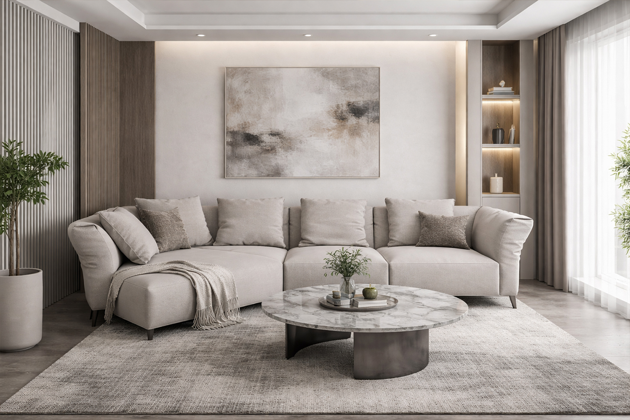 Современный модульный диван в серо-бежевой обивке — воплощение расслабленного уюта и продуманной эргономики. Его лаконичные формы, воздушные подушки и тонкие ножки придают модели визуальную легкость, сохраняя при этом максимальный комфорт. Такой угловой д...