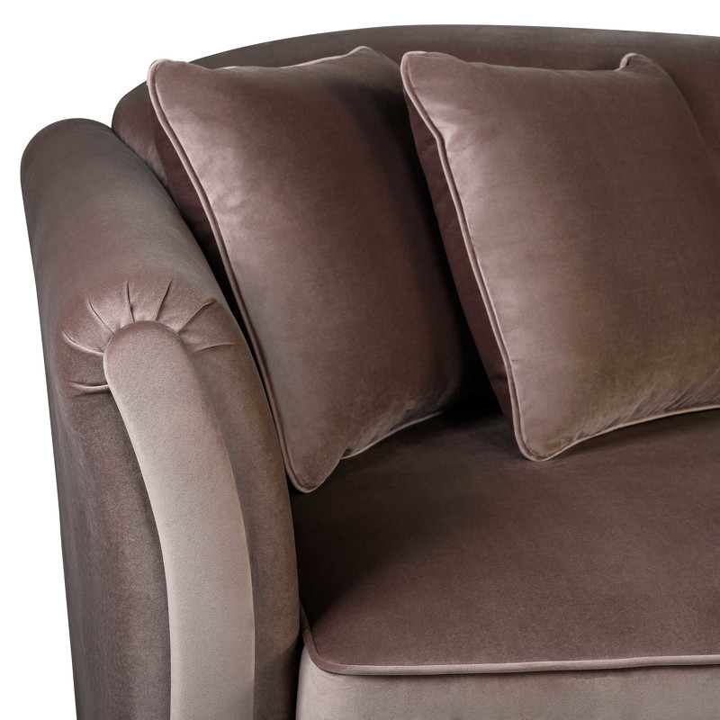Обивка - ткань из ассортимента фабрики в коричневых тонах. Тип ткани - велюр. Ткань отличается перламутровым переливом и высокой плотностью ворса. Состав ткани 100% полиэстер. Ножки из массива дерева, окрашены в черный цвет.