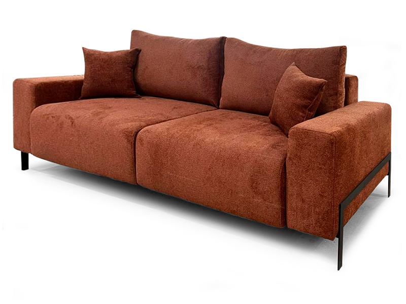 - Современный дизайн: минималистичные линии дополняются стильными металлическими ножками, придающими дивану элегантность и устойчивость.