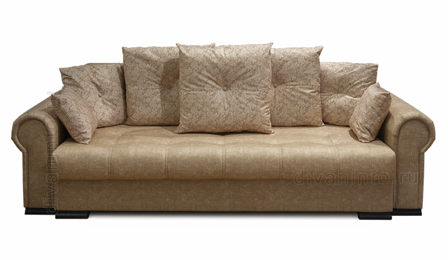 Серия декоративных подушек с великолепным дизайном и дополнительными элементами позволяет создавать различные варианты комфорта и с лёгкостью изменять стильную атмосферу интерьера. Мягкие и эргономичные фигурные подлокотники добавляют дивану утончённости и делают его еще более удобным. Практичный и вместительный бельевой ящик позволяет компактно и элегантно хранить постельные принадлежности или другие вещи.