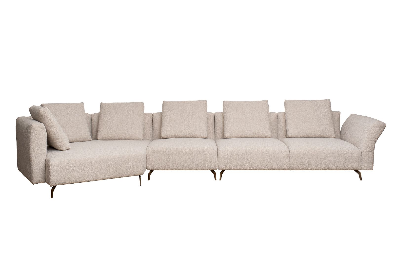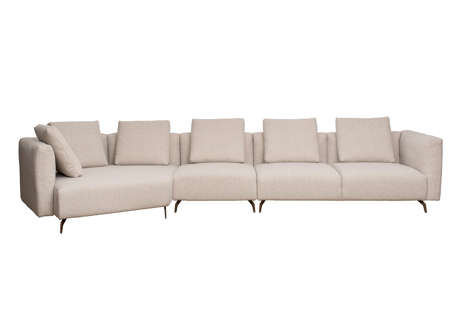модуль кресельный нейтральный-1шт, модуль двухместный с правым подлокотником-1шт, модуль трапеция левый угол-1шт. Комплект выполнен в ткани из коллекции Garda Decor- букле Orso BEG.В состав комплек...