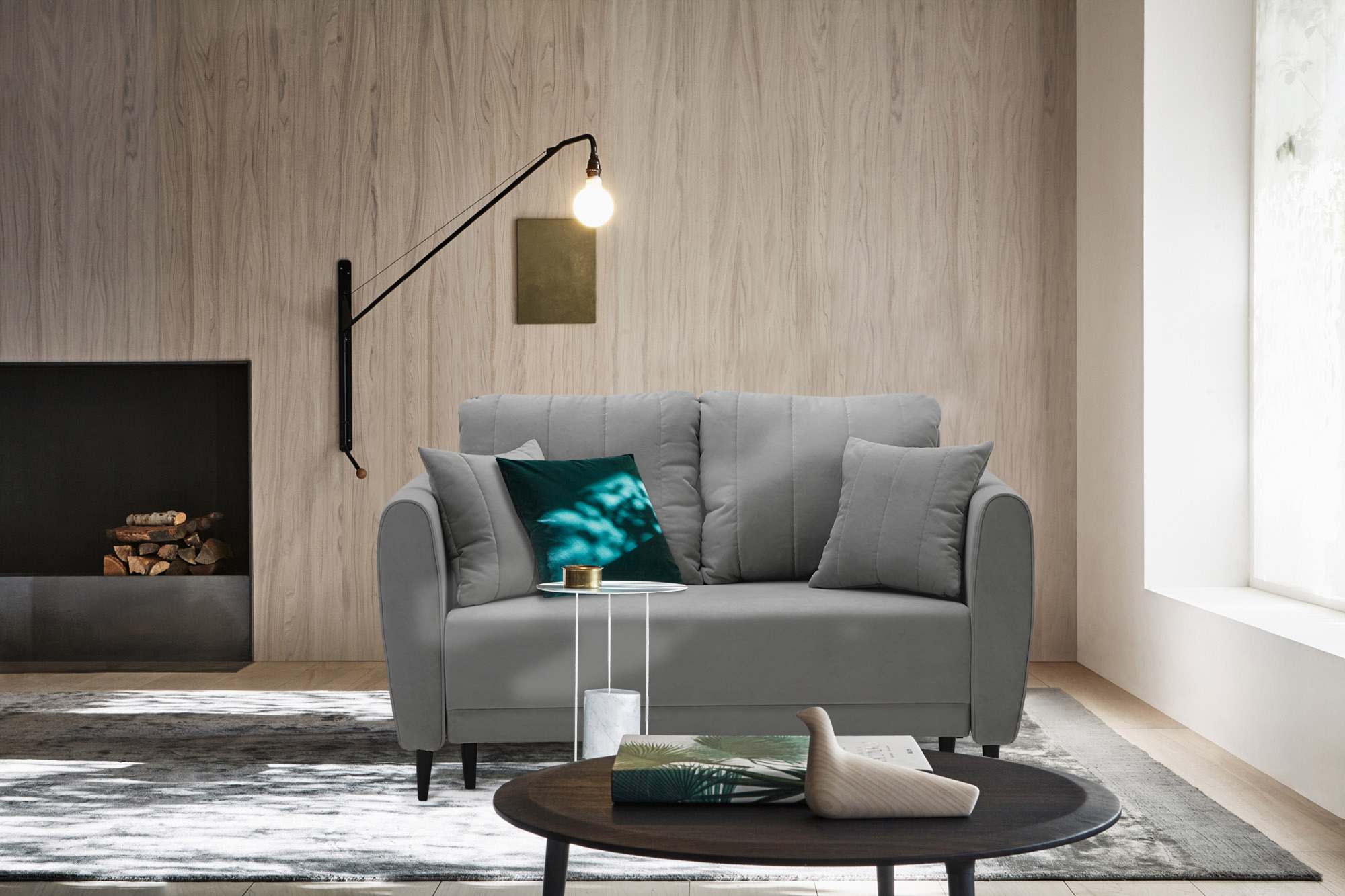 Прямой мини диван Калано 120 Серый велюр