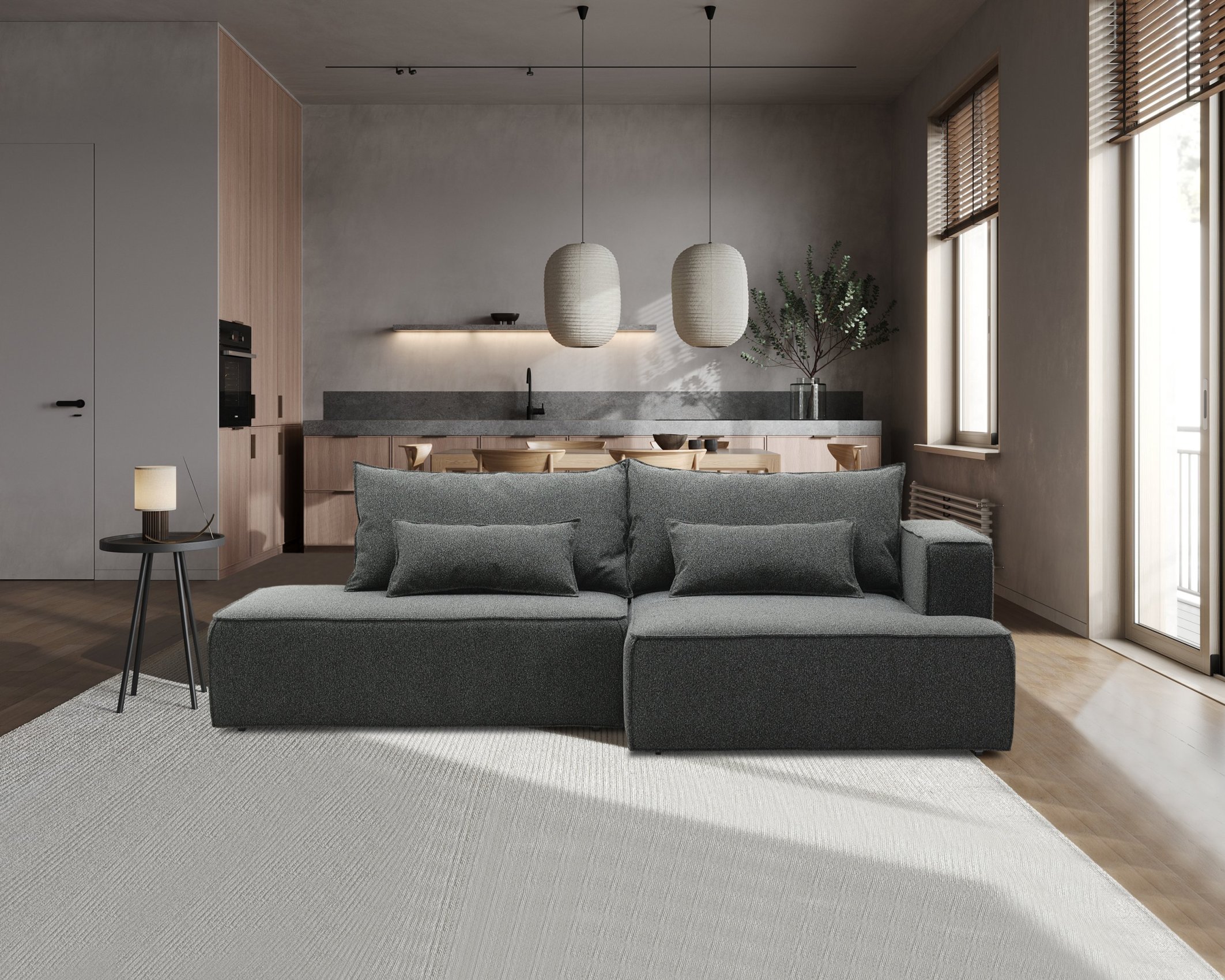 Угловой диван левый Рейф Графитовый меланж букле