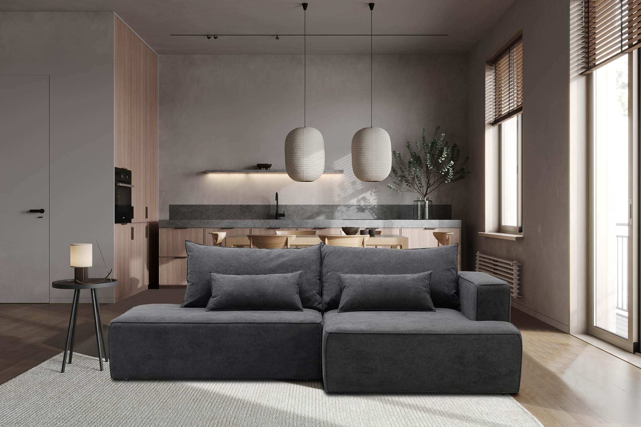 Угловой диван правый Рейф Графитовый велюр