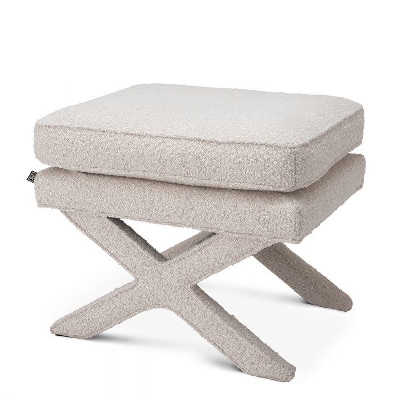 Полностью обитый удивительно мягкой на ощупь тканью букле, этот великолепный пуфик опирается на прочное перекрещивающееся основание.