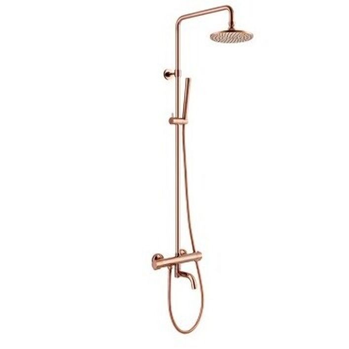 Allure Душевая колонна термостатическая+верхний душ18,7 см Air Mix+ручной душ 1 функц+шланг PVC 150 см+поворотный излив на ванну 12 см золото розовое