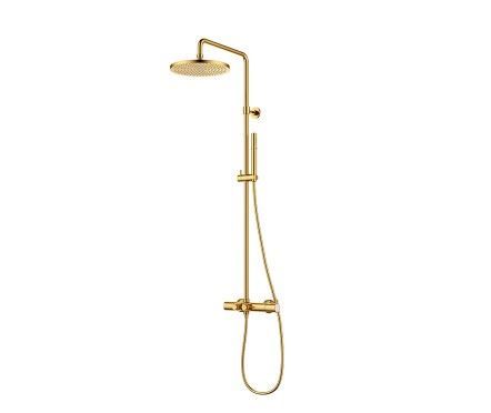 Moonlight Душевая колонна термостатическая 2*GoClick-V+верхний душ 25,4 см+ручной душ 2 функции золото брашированное