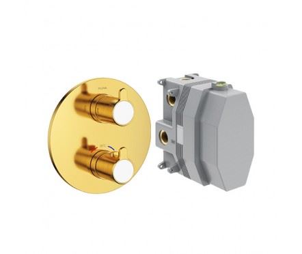 Moonlight Смеситель термостатический для ванны и душа встраиваемый в стену 3 выхода (3*1/2) золото брашированное (SmartBox в комплекте)