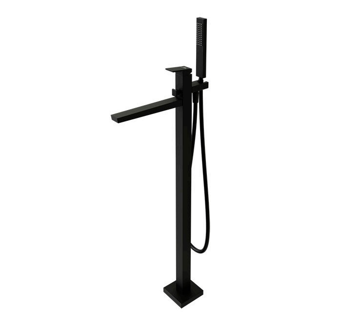 Square Комплект смесителя (смеситель напольный+ручной душ+гибкий шланг) черный