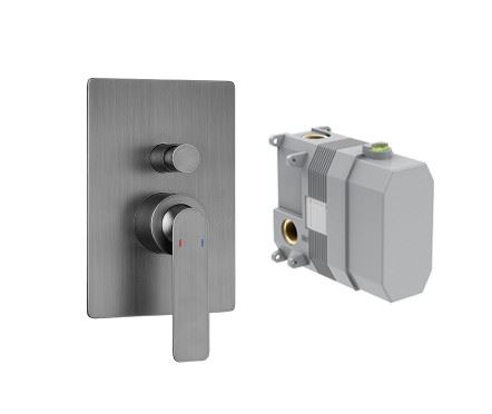 Stream Смеситель для ванны и душа с переключателем, встраиваемый в стену 2 выхода (1*1/2 1*3/4) сталь брашированная (SmartBox в комплекте)