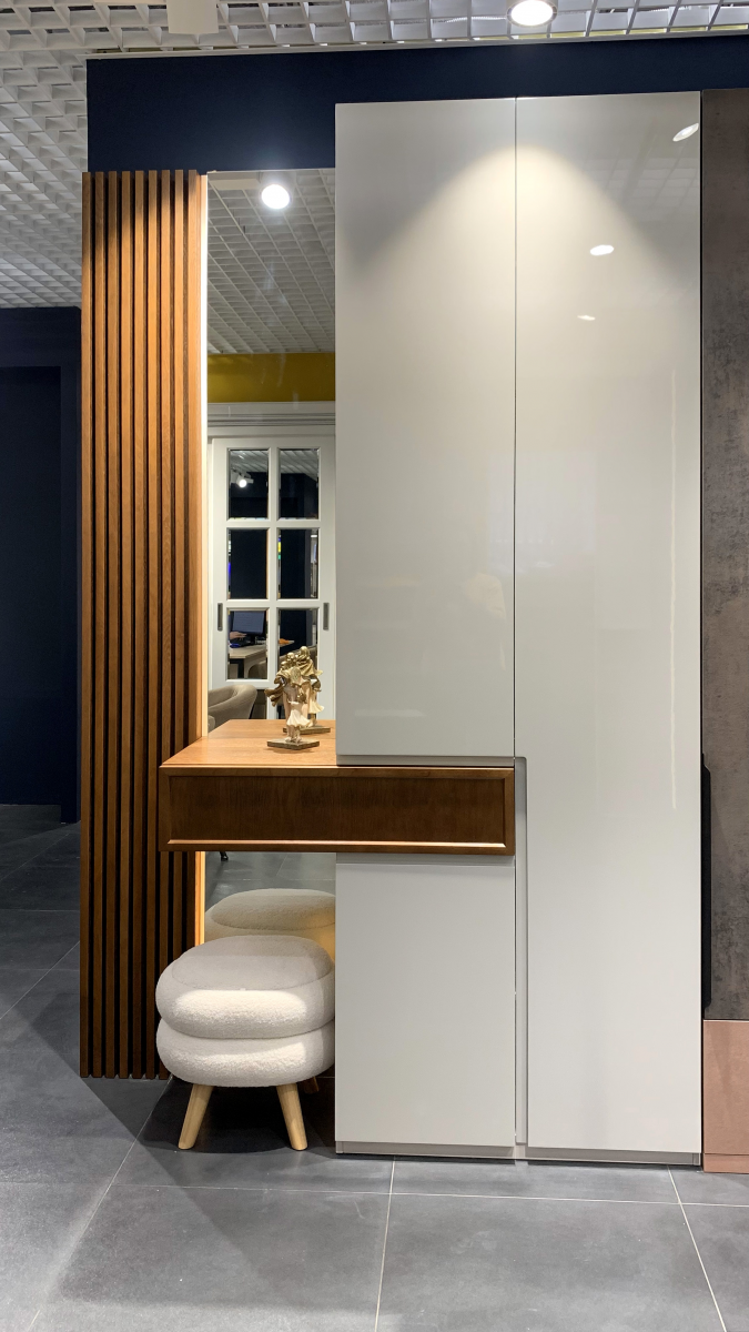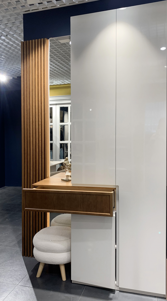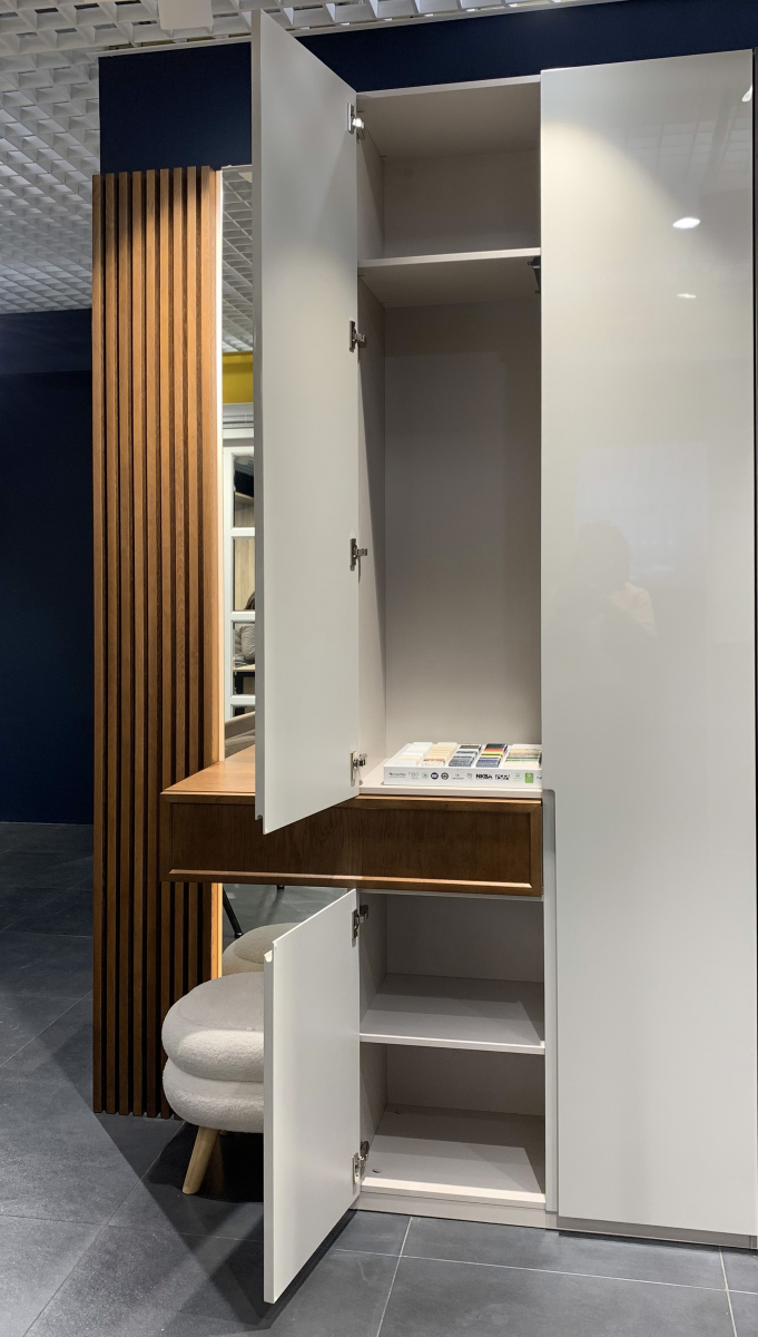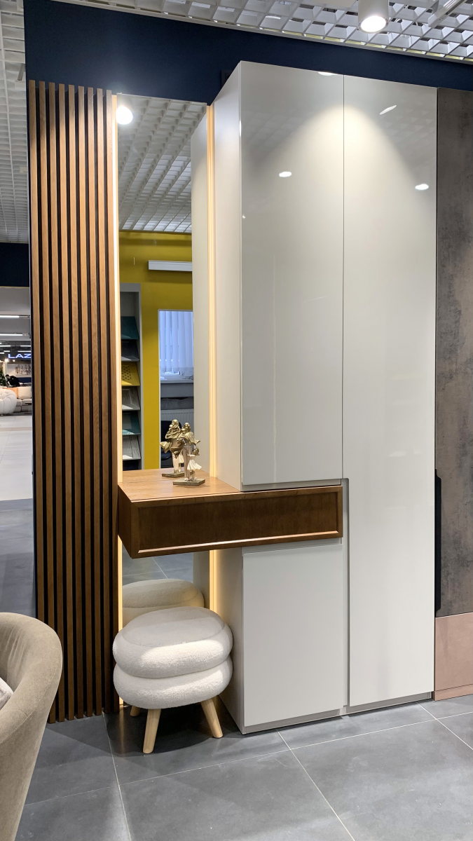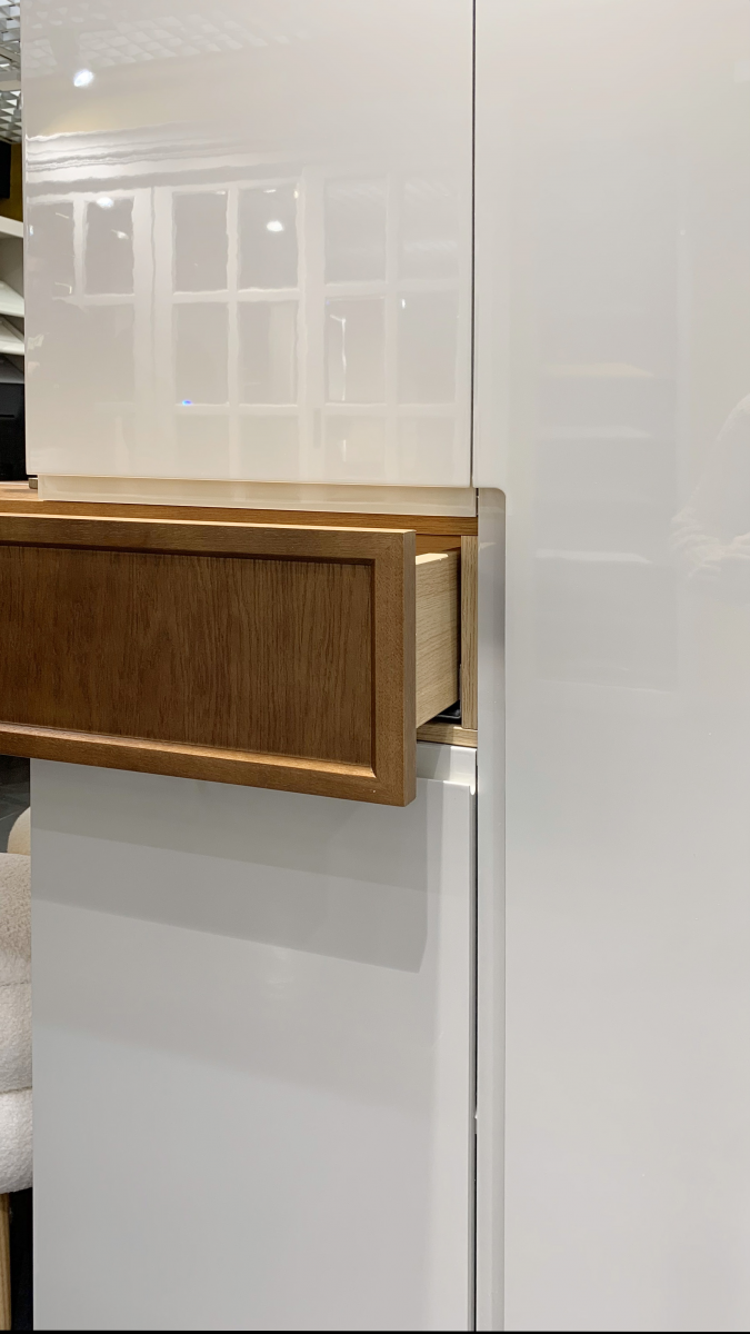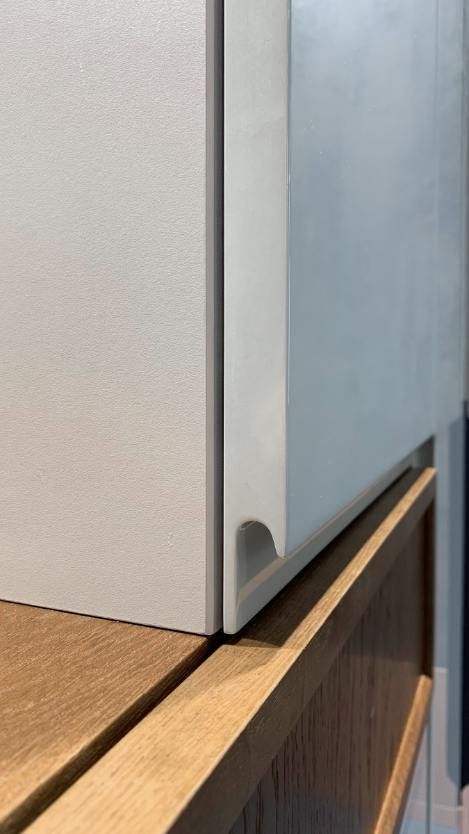 - Материал фасада: МДФ эмаль с интегрированной ручкой, шпон Джерси