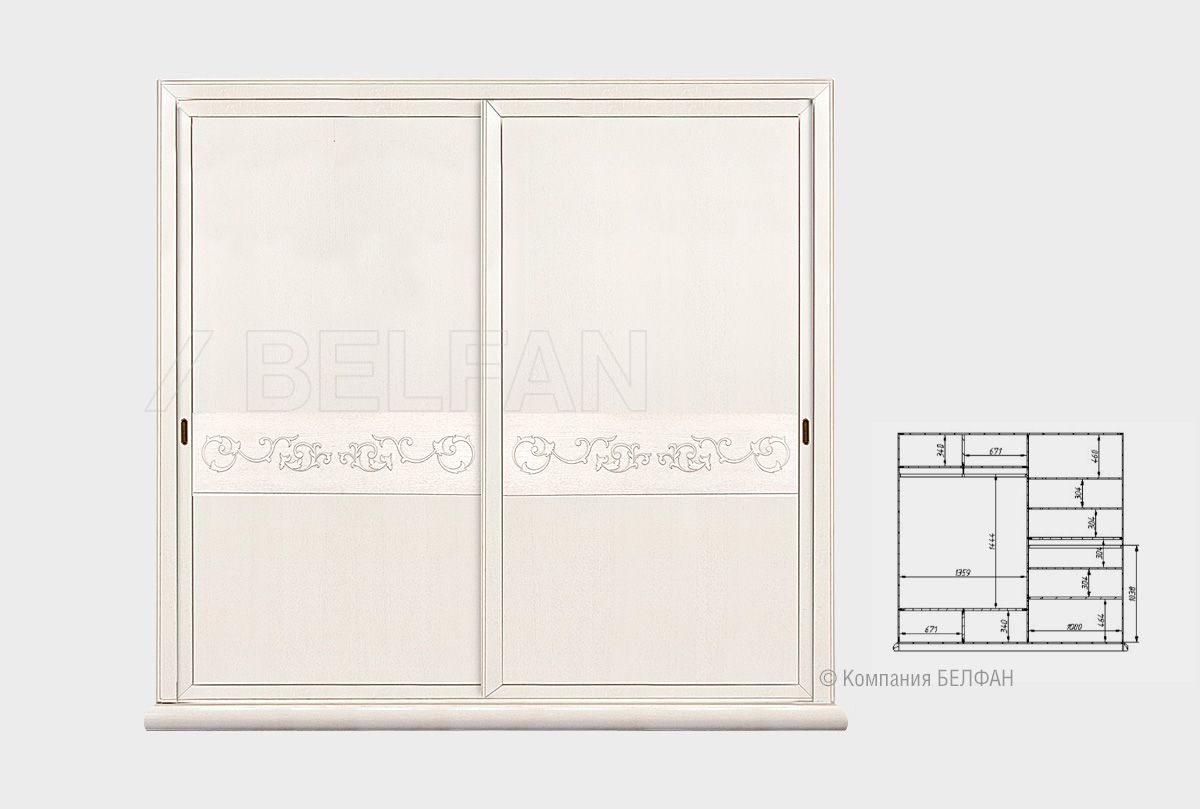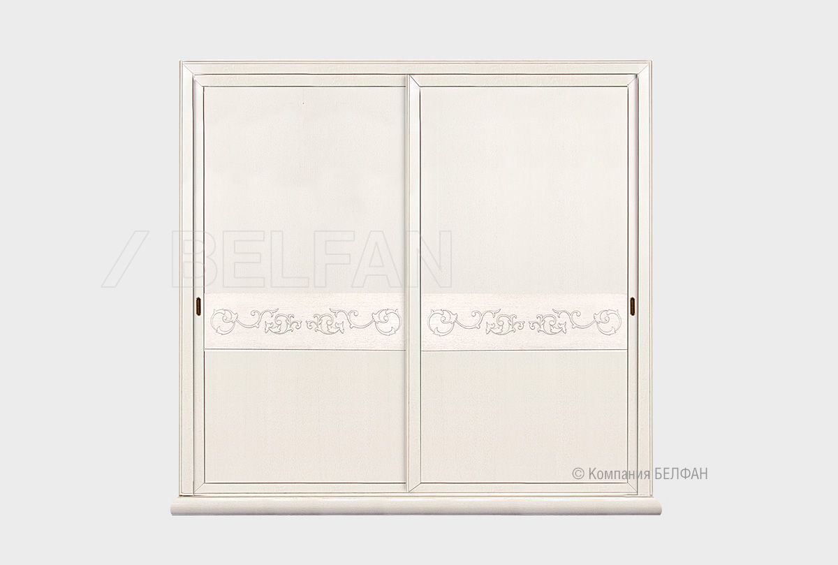 Двухдверный шкаф-купе «Соната» подойдет как для просторного большого дома, так и для небольшой квартиры. Несмотря на внушительные размеры, он экономит место в помещении благодаря раздвижным дверям. Продуманная внутренняя компоновка позволит вам по максимуму использовать функционал этого шкафа и поместить в нем одежду всех членов семьи. Функционал – это не все, чем может похвастаться этот шкаф. Изюминку дизайну придает резной орнамент на фасаде раздвижных дверей.